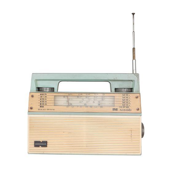 Este rádio portátil Nissei é um exemplar típico da transição tecnológica dos sistemas valvulares para os amplificadores “solid‑state” (transistores). Com sintonia em múltiplas bandas (AM e ondas curtas), antena retrátil e sintonia por roda frontal, era amplamente utilizado em áreas urbanas e rurais. Representa uma era de democratização do acesso à informação sonora, ideal para comunidades que dependiam de ondas curtas para captar notícias do exterior.