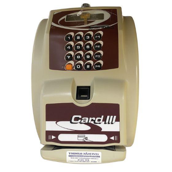 Teclado numérico e slot para cartão-ponto — funcionava como terminal fixo para registro de entradas e saídas de funcionários. Uma tecnologia intermediária antes da popularização dos relógios biométricos e sistemas online.