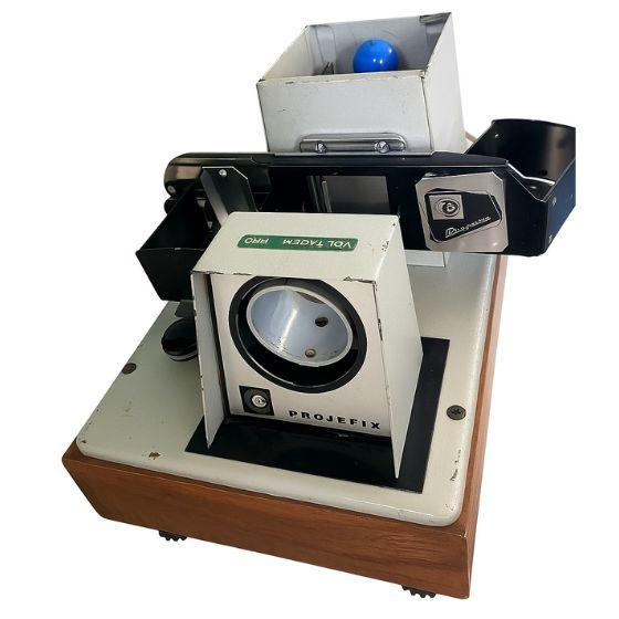 Foi desenvolvido para uso educacional, corporativo e doméstico, possibilitando a exibição de fotografias em sequência automática, utilizando lâmpadas halógenas internas e sistema de carregamento de slides em carrossel lateral. A marca ProjeFix era usada pela CCE em sua linha de equipamentos de projeção, sendo comum em escolas públicas e privadas no Brasil. Esse tipo de projetor foi essencial no ensino visual antes do advento dos projetores digitais e dos computadores.