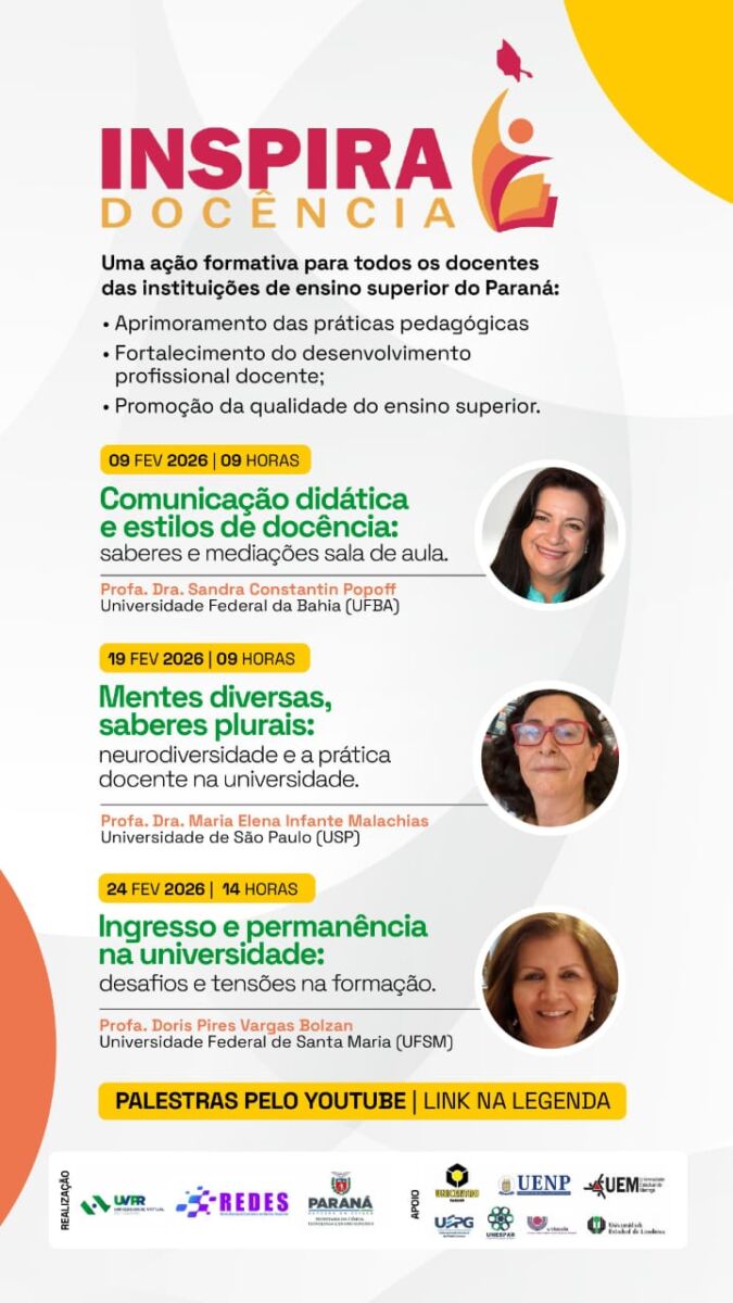 A publicação reúne experiências formativas e projetos desenvolvidos por docentes das universidades estaduais do Paraná, com foco na qualificação da docência no ensino superior.