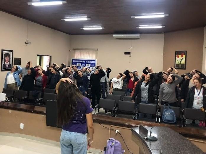 No GAT 1, “cuidar de quem cuida” foi a frase motivadora das ações, pensando sempre na relação entre saúde e equidade. “A gente propôs uma prática de atividade física, falamos da sua importância, das barreiras que estão ligadas à falta de tempo, de dinheiro. Puxamos também a questão de gênero, por exemplo: as mulheres quando vão se exercitar, às vezes, se sentem mal por fazer isso na rua e correr o risco de ser assediada”, contextualiza a estudante de Psicologia Luana Gaioski, integrante do PET-Saúde.