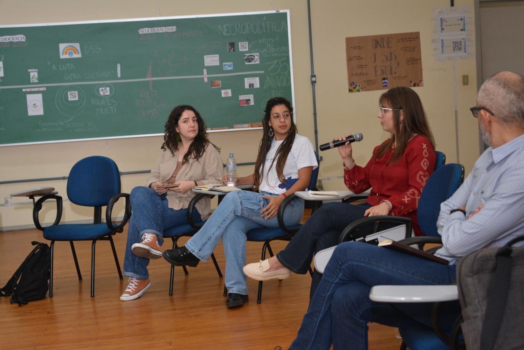 Ainda pela manhã, a mesa-redonda “As políticas públicas de saúde no Brasil e o impacto do VER-SUS na formação acadêmica” trouxe participantes de diferentes edições do Projeto Vivências e Estágios na Realidade do Sistema Único de Saúde (VER-SUS) para compartilhar suas experiências. Participaram as estudantes de Psicologia Eleni Brito (Unicentro), Daniela Crestanello (UFRGS) e Helena Pincolini (UFRGS), além da psicóloga Nájila Camargo.