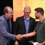Nomeados receberam mudas de árvores que simbolizam o crescimento e os frutos que irão colher durante o trabalho na Unicentro (Foto: Coorc).