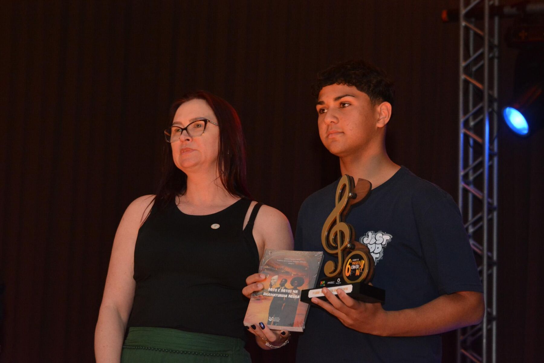 Novidade desta edição, a modalidade “Jovens Talentos” premiou estudantes do ensino fundamental e médio. O vencedor da noite tem apenas 15 anos, mas um currículo digno de veterano. Há mais de uma década cantando, Kauê Bueno coleciona troféus e participou inclusive do programa Raul Gil, no SBT, em 2022. Desta vez, ele ficou em 1º lugar com a música “Por um gole a mais”, da dupla Bruno & Marrone. “É muito gratificante pra mim, porque desde criança eu já gosto de música, sou apaixonado por música sertaneja, e Bruno & Marrone é bom demais”, comenta o aluno do Colégio Estadual Dr Chafic Cury, de Rio Azul.