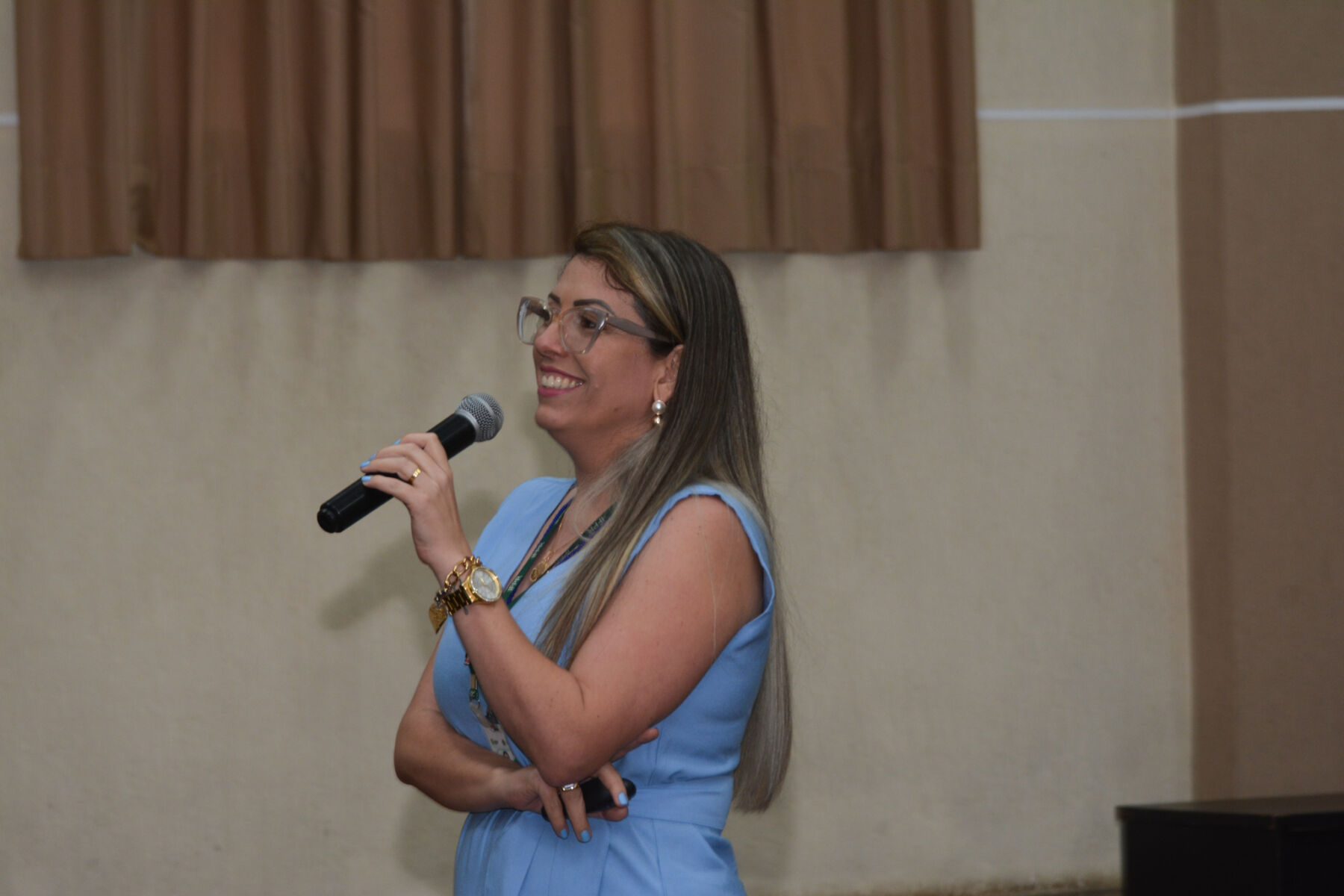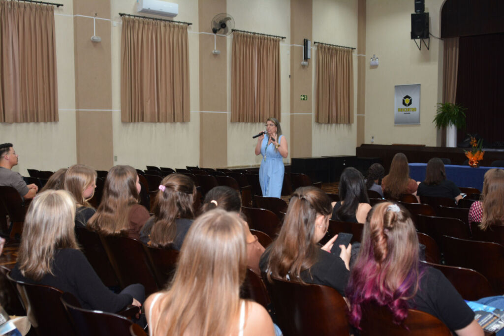 A técnica em assuntos educacionais do IFPR, Mônica Simião Pinto, foi a palestrante do primeiro dia de evento em Irati (Foto: Coorc).