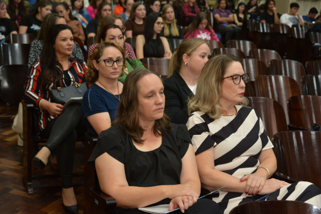 Simultaneamente, o professor Paulo Fioravante Giareta, da Universidade Federal de Mato Grosso do Sul (UFMS), palestrou para estudantes de Pedagogia em Prudentópolis. Ele abordou a ética no trabalho e na educação com IA.