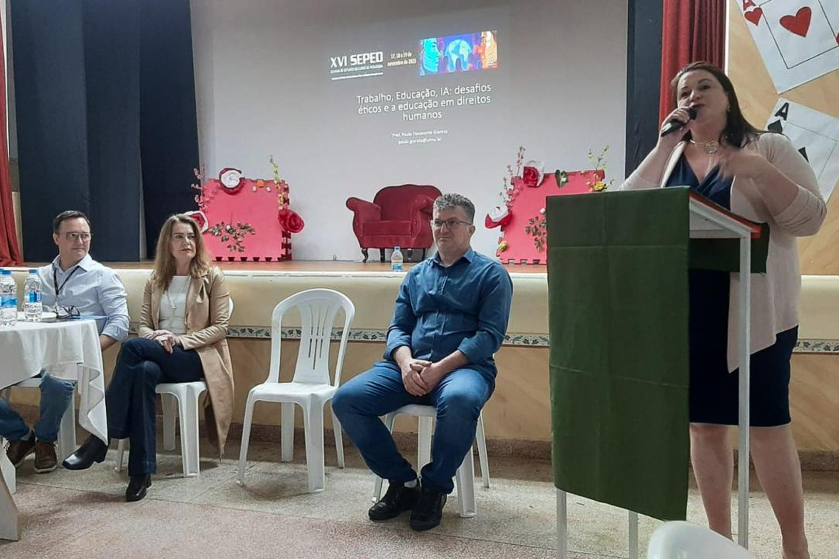 Na abertura da Seped, na segunda-feira (17), a programação foi de conferências. Em Irati, a técnica em assuntos educacionais do Instituto Federal do Paraná (IFPR), Mônica Simião Pinto, falou sobre as possibilidades da IA e os cuidados com os direitos humanos durante o seu uso.