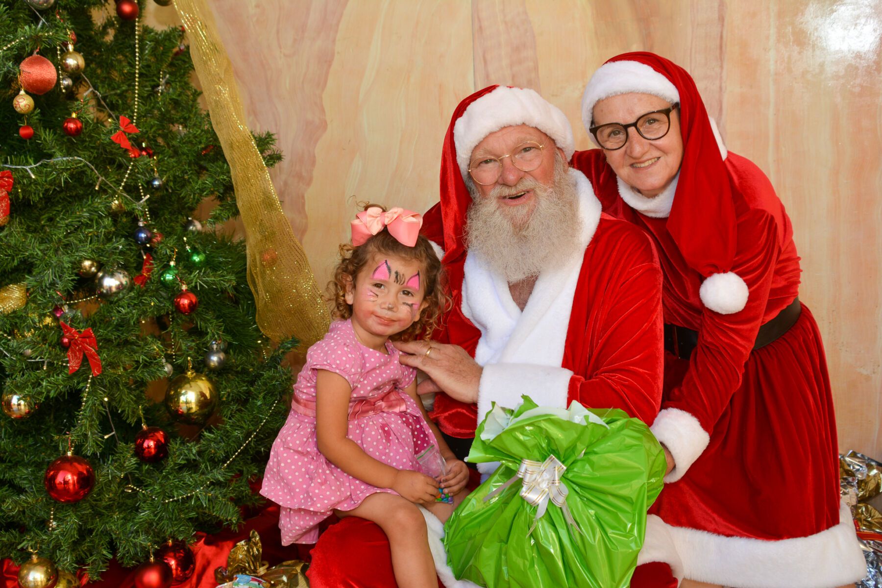 As crianças receberam os presentes do Papai e da Mamãe Noel durante uma tarde de confraternização na unidade universitária, com direito à música, brincadeiras, pintura facial e lanches.