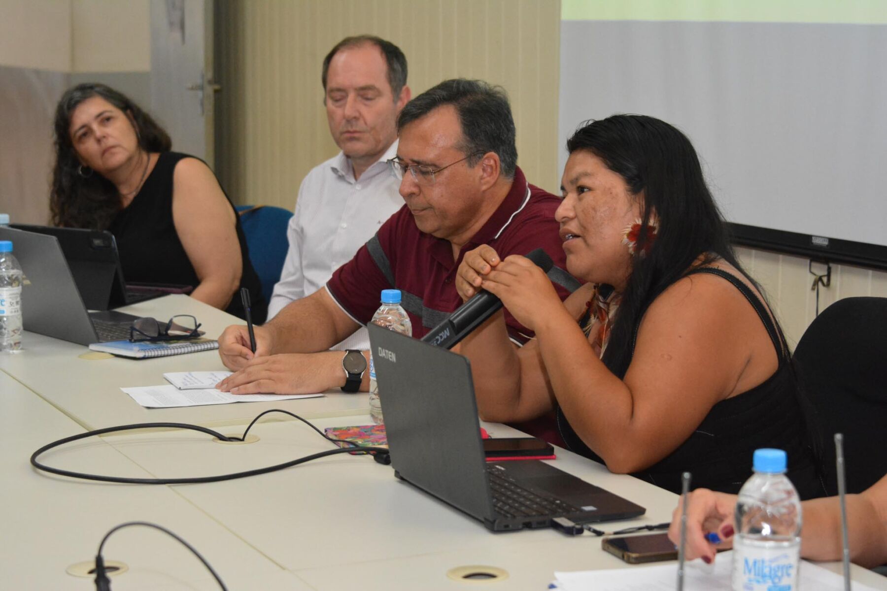 A professora Elizandra Fygsãnh Freitas falou sobre a vivência dos acadêmicos kaingang nas universidades (Foto: Coorc).