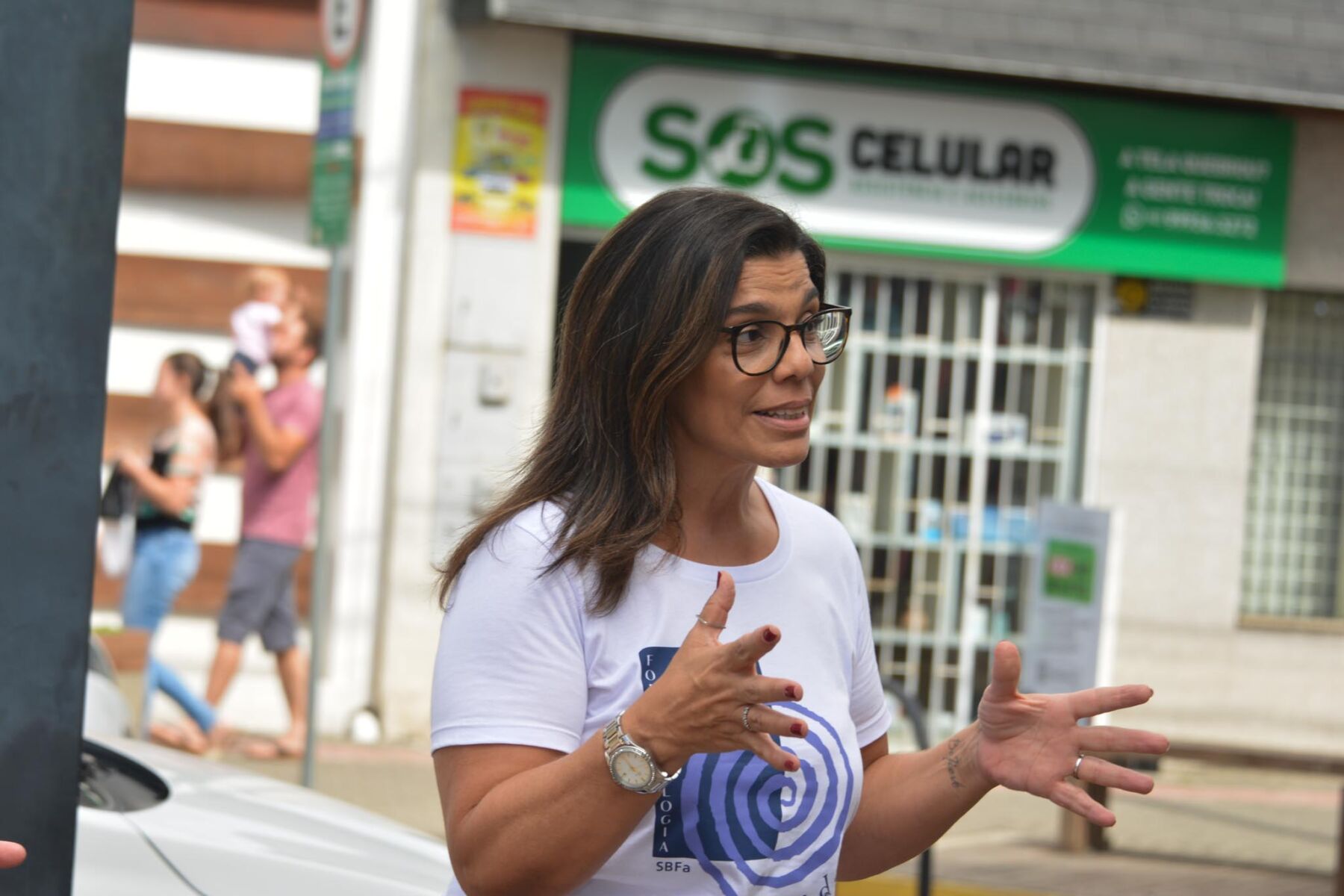 “Por ser um lugar com uma grande circulação, pensamos que o centro da cidade seria um bom espaço para que a gente pudesse abordar as pessoas, conversar e orientar sobre cuidados com a voz”, conta Eliane Cristina Pereira, coordenadora geral da ação. “Além disso, também divulgamos os serviços gratuitos ofertados na nossa Cefono, que é a Clínica Escola de Fonoaudiologia”, completa a docente.
