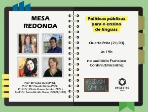 “A mesa tem o intuito de promover um espaço para debate a partir de quatro importantes enfoques direcionados para o ensino de Línguas Estrangeiras, Língua Portuguesa e Literaturas frente às demandas político-educacionais. Primeiramente, apresentamos considerações acerca das recentes mudanças em relação à oferta da Língua Espanhola na Educação Básica. As mudanças políticas impostas pela recente Lei do Ensino Médio, atrelada à Base Nacional Comum Curricular (BNCC), desconsideram o espaço criado para a formação de professores na área, bem como descarateriza esta área do conhecimento ao excluí-la do rol de disciplinas da educação básica. No segundo enfoque refletimos sobre o ensino da língua portuguesa com as articulações e apresentação da BNCC e os possíveis impactos do documento no trabalho docente na escola. No terceiro enfoque sublinhamos a necessidade de coerentes concepções de língua, literatura, linguagem, leitura, texto e leitor, a fim de abrir todo um caminho para uma (re)formulação do próprio objeto do ensino de língua e de literatura para uma perspectiva de prática social em que o educando amplia a sua capacidade linguística para as situações de uso e vivencia a experiência com a literatura que considere não a segmentação disciplinar de saberes atreitos às duas áreas, mas sim o diálogo entre ambas. O quarto enfoque suscita a necessidade de trabalhos interdisciplinares para leitura em documentos oficiais em língua estrangeira e língua portuguesa. A partir de prescrições educacionais brasileiras de Ensino Médio mapeamos dimensões de linguagem explicitadas a fim de tecer reflexões sobre os direcionamentos dados aos docentes para a prática de ensino em ambas as propostas. Consideramos, portanto, que as políticas públicas demandam estudos profundos das implicações que geram descompasso nas práticas de ensino das linguagens e de formação de professores.”