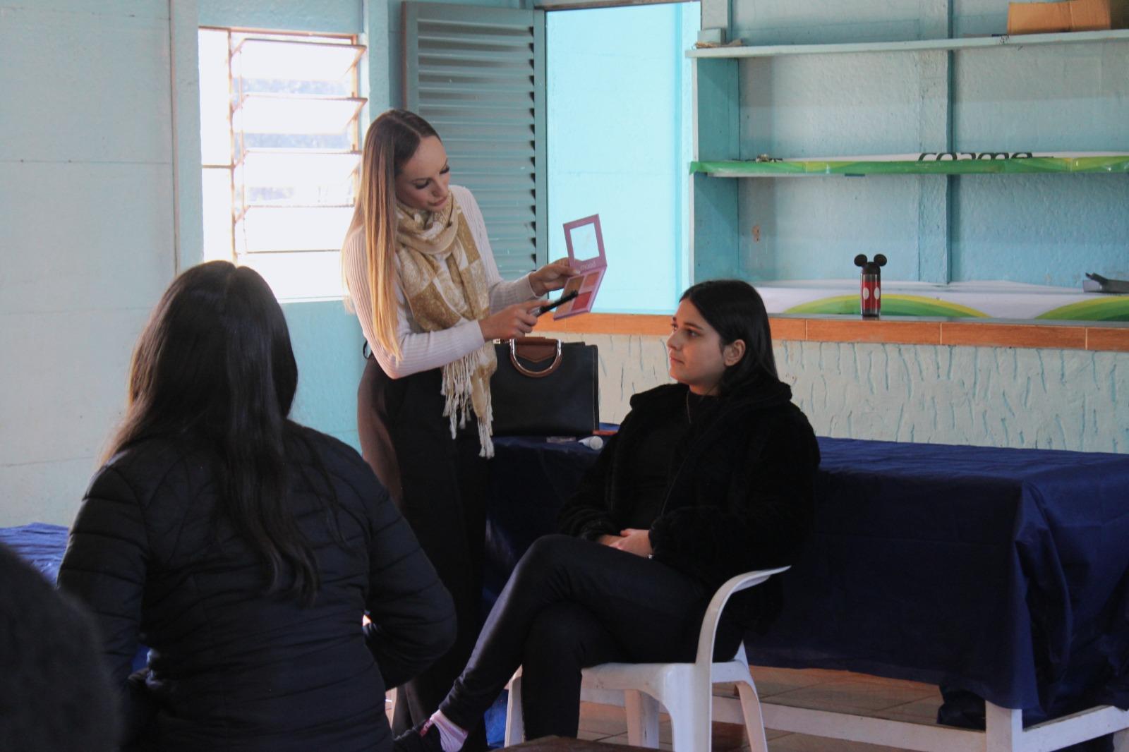 O tema abordado foi autocuidado e maquiagem, com condução da profissional Aline Schinemann. A atividade teve uma abordagem prática e interativa, permitindo que todas as participantes se envolvessem diretamente, experimentando os produtos e aprendendo a utilizá-los da forma correta.