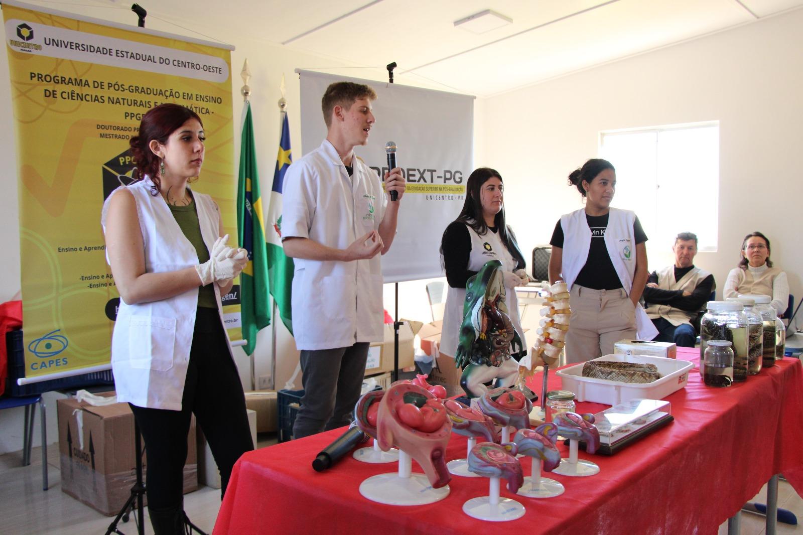A participação da Unicentro se deu pela integração de dois projetos de extensão. O projeto Ciência & Movimento: Universidade em Ação, institucionalizado na universidade, tem como objetivo alfabetizar cientificamente e popularizar a ciência, levando conhecimento para diferentes espaços educacionais, formais e não formais. Para isso, são utilizados materiais dos laboratórios do Departamento de Ciências Biológicas e do Laboratório de Ensino de Ciências, que são apresentados de maneira prática e interativa. Já o Programa de Extensão da Educação Superior na Pós-Graduação (Proext-PG), vinculado à Coordenação de Aperfeiçoamento de Pessoal de Nível Superior (Capes), oferece recursos para viabilizar as atividades de extensão desenvolvidas pelos programas de mestrado e doutorado.