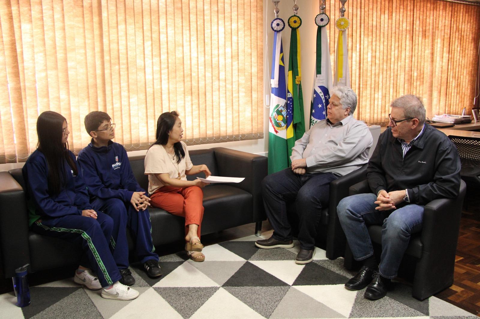 Na última segunda-feira (18), a Universidade Estadual do Centro-Oeste (Unicentro) recebeu a carta do Pacto Global de Jovens pelo Clima, iniciativa internacional que busca destacar a educação como elemento central no enfrentamento da crise climática. O documento foi entregue pela professora do Departamento de Ciências Biológicas da Unicentro e coordenadora nacional do Pacto, Adriana Massae Kataoka, acompanhada pelos estudantes Thaila da Silva e Carlos Henrique Ramos Nogueira, do Colégio Estadual Professor Pedro Carli – Paraná Integral.