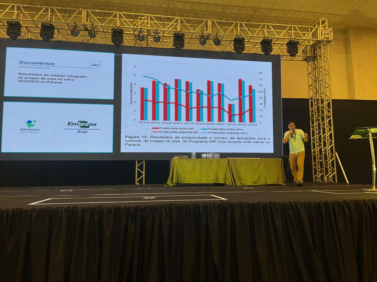 Um dos destaques da programação foi a palestra do professor João Ronaldo de Freitas, do Departamento de Agronomia. Em sua fala, ele abordou o monitoramento de dados aplicado ao manejo de pragas e doenças. Segundo o docente, a proposta foi mostrar como o uso da informação contribui para a sustentabilidade. “Estamos falando de manejo sustentável, ou seja, reduzir o número de aplicações, diminuir a exposição do produtor a produtos químicos e evitar a contaminação ambiental. Essa forma de manejar tem impacto positivo na economia, no meio ambiente e na saúde do trabalhador rural”, ressaltou.