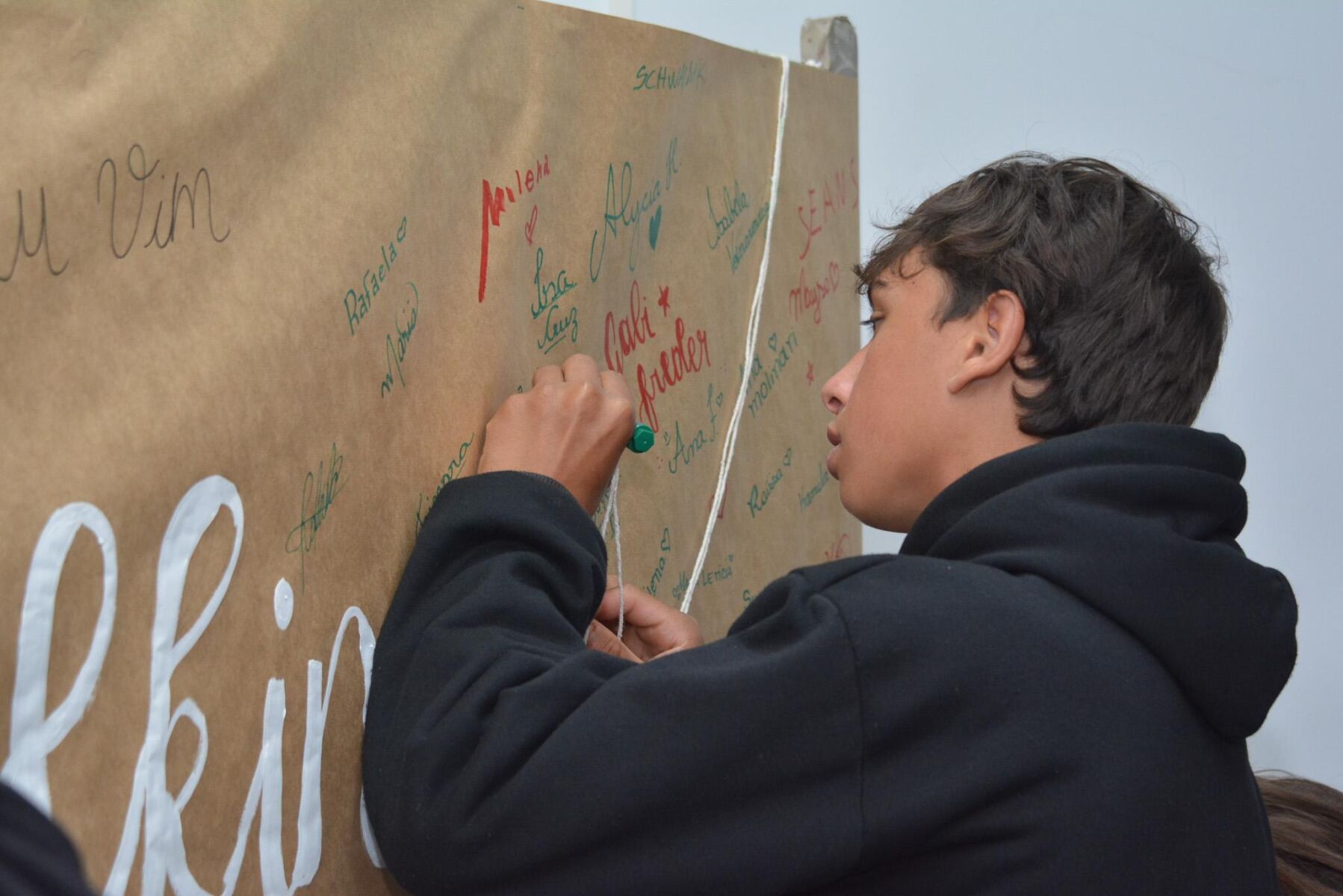 A professora Mariléia Gartner, do Departamento de Letras, reforça o protagonismo discente nas apresentações durante o Walking Tour. “Nós contamos com a participação dos nossos estudantes, que fizeram toda a organização dos corredores, das salas, com muita literatura e muita linguística, trazendo um pouquinho da essência dos nossos cursos de Letras Português, Inglês, Libras e Espanhol”, descreve a docente.