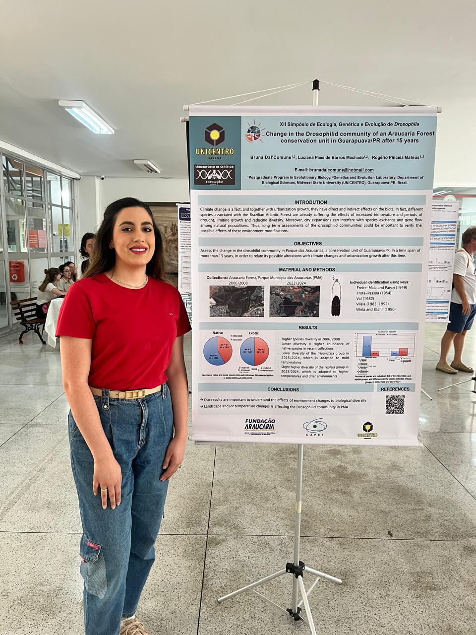 A bolsista Bruna Dal’Comune, do Programa de Pós-Graduação em Biologia Evolutiva (PPGBioEvol), concluiu recentemente sua dissertação de mestrado sobre mudanças ambientais no Parque Municipal das Araucárias. Orientada pelo professor Rogério Pincela Mateus, ela utilizou drosofilídeos, organismos ectotérmicos que regulam sua temperatura corporal conforme o ambiente, como indicadores das alterações climáticas e de paisagem na região, avaliando também possíveis impactos genéticos nessas populações.