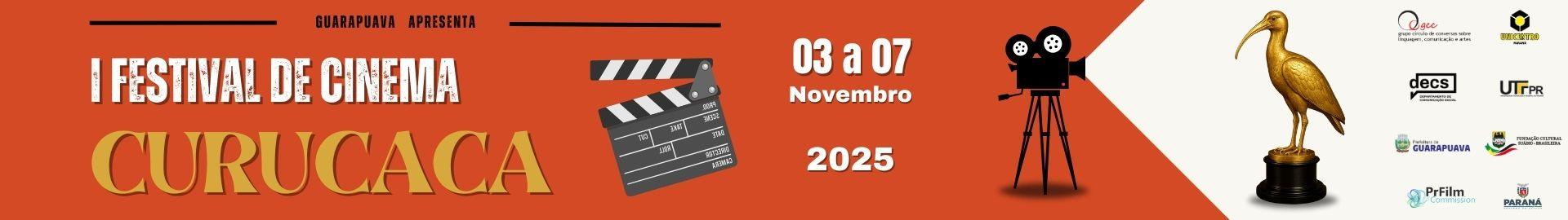 De 3 a 7 de novembro, Guarapuava será palco do 1º Festival de Cinema Curucaca, evento voltado à valorização da produção audiovisual independente no interior do Paraná. O evento é promovido pela Universidade Estadual do Centro-Oeste (Unicentro), em parceria com o grupo de pesquisa e extensão Círculo de Conversas sobre Linguagem, Comunicação e Artes (GCC), a Universidade Tecnológica Federal do Paraná (UTFPR), a Fundação Cultural Suábio-Brasileira, a Secretaria de Cultura de Guarapuava, a Secretaria de Turismo e Eventos, a PR Film Commission e o Núcleo Regional de Cultura.
