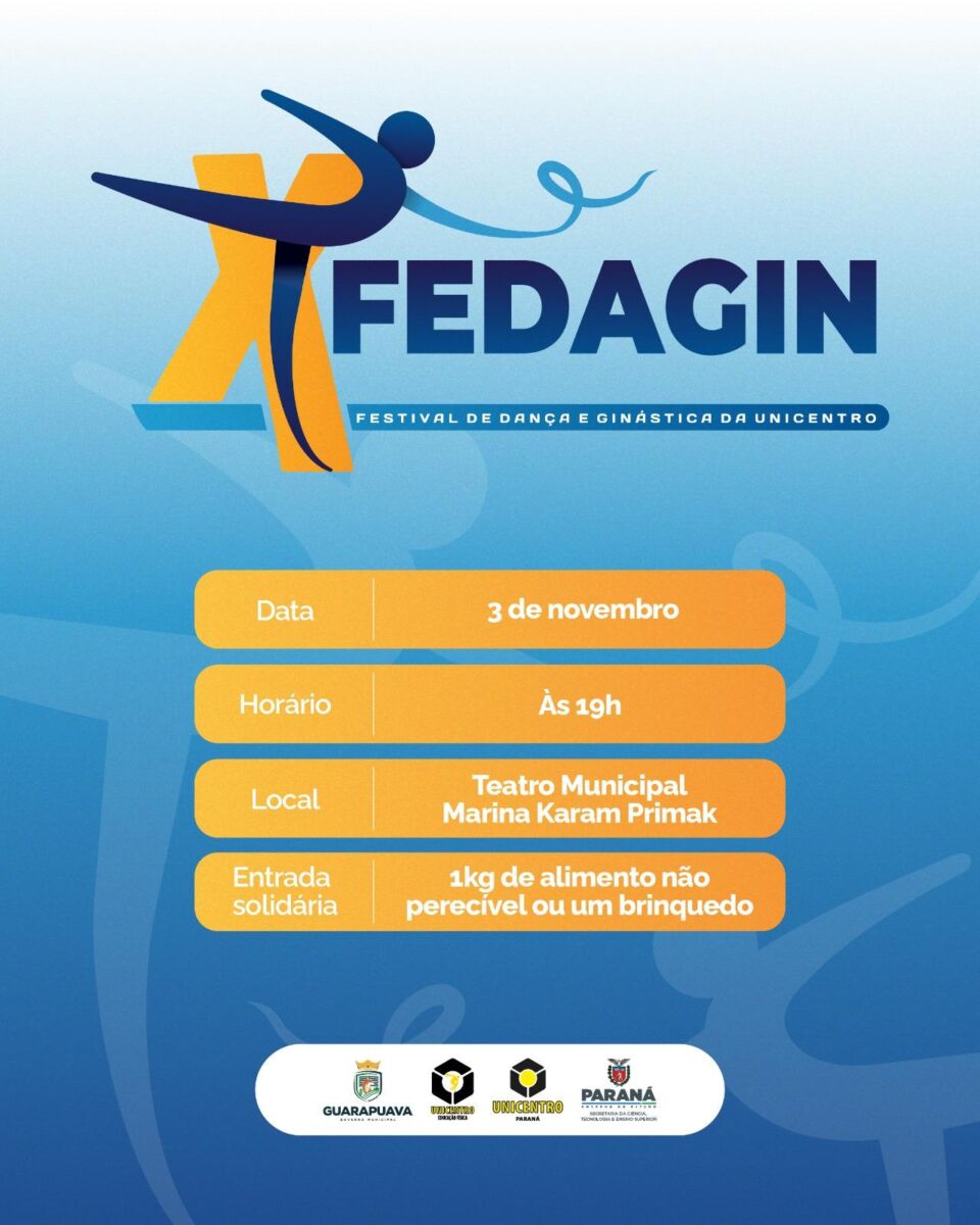 Fedagin é o evento anual organizado pelos estudantes do curso de Educação Física da Unicentro, e reúne apresentações de diferentes estilos de dança e ginástica, tanto de alunos quanto de academias e grupos convidados. O festival serve como uma oportunidade para que os estudantes vivenciem e aprendam sobre a organização de um evento e a prática de suas habilidades em dança e ginástica. As apresentações abrangem uma variedade de estilos, como música sul-coreana, o k-pop, dança gaúcha, dança de salão e acrobacias aéreas, entre outros.