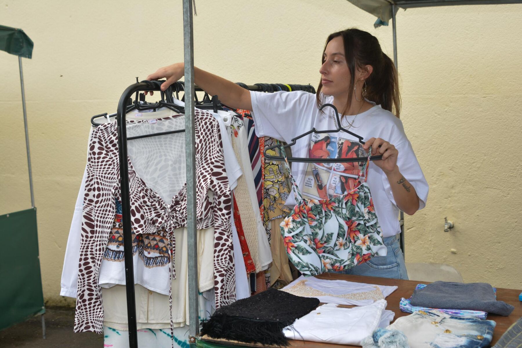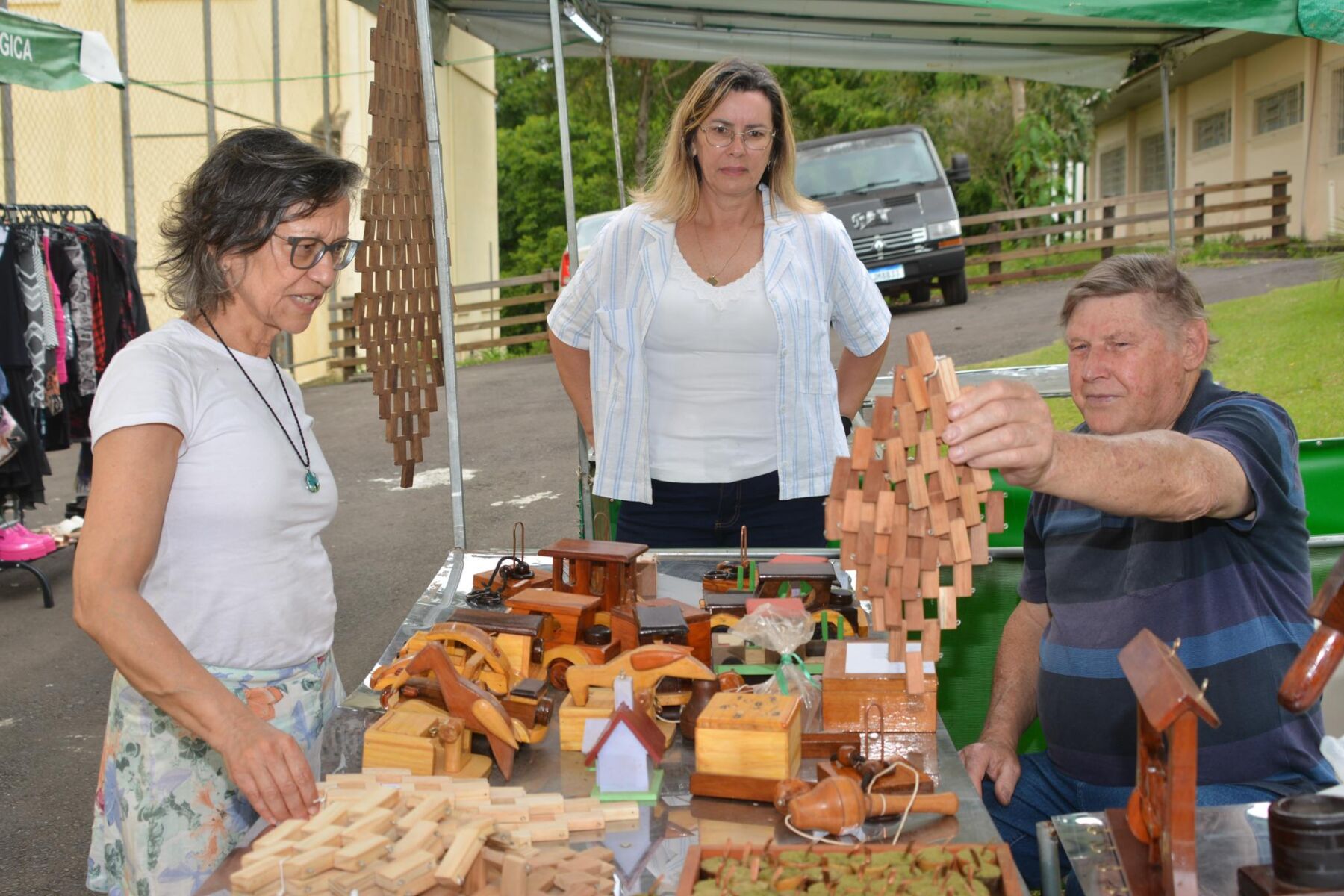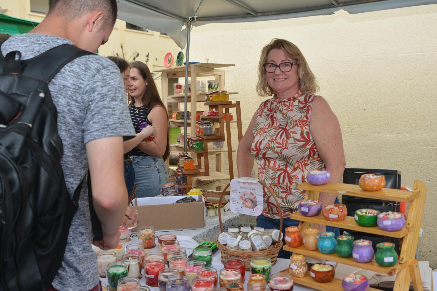 A iniciativa também recebeu feirantes de outras cidades, como Rebouças e São Mateus do Sul, demonstrando a variedade da produção familiar na região. A empreendedora Edla Wolf Harmuch, que participa semanalmente das feiras da Unicentro em Guarapuava, trouxe velas aromáticas, escalda-pés, objetos decorativos e bijuterias da sua marca Dahlia.