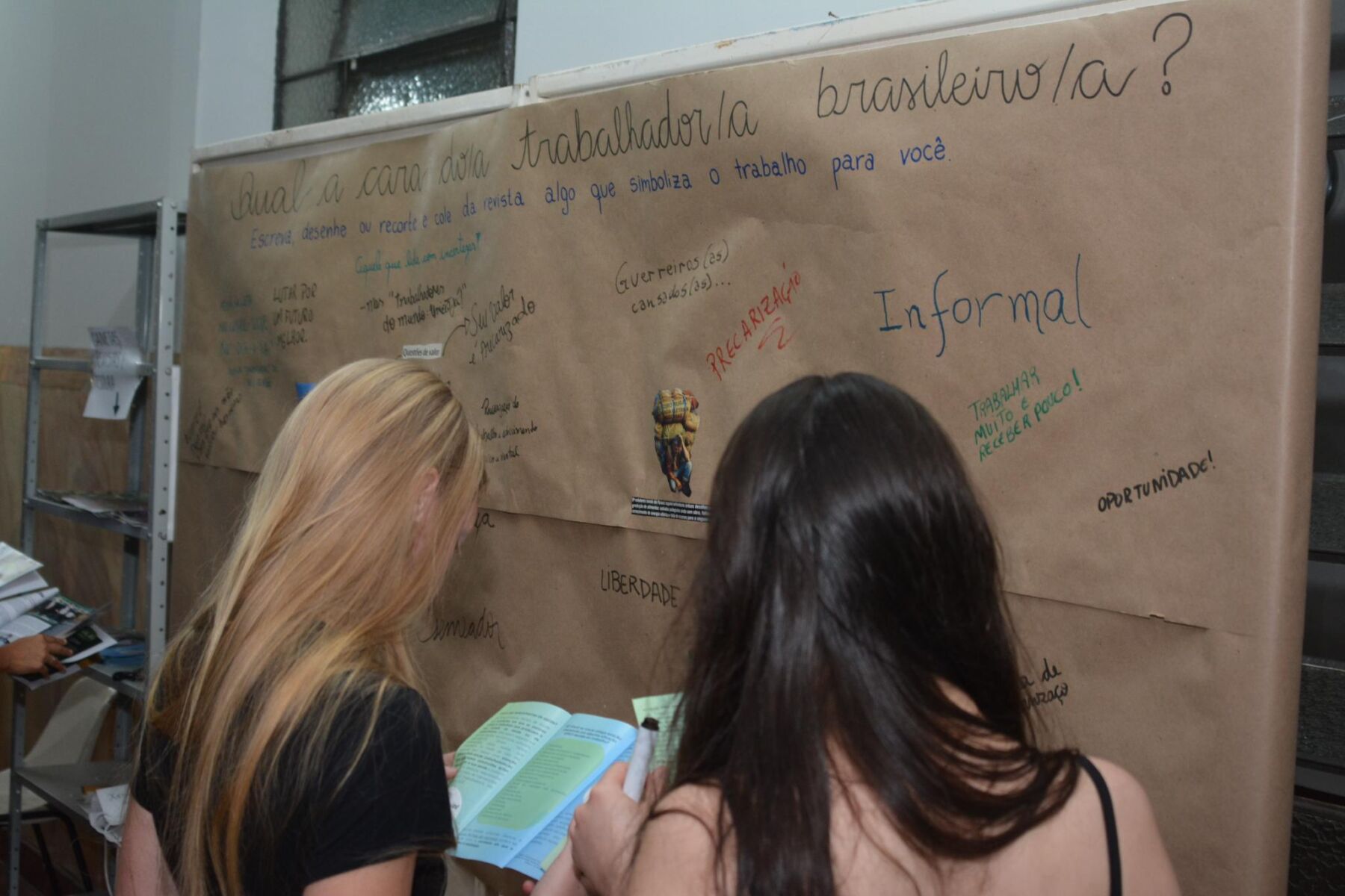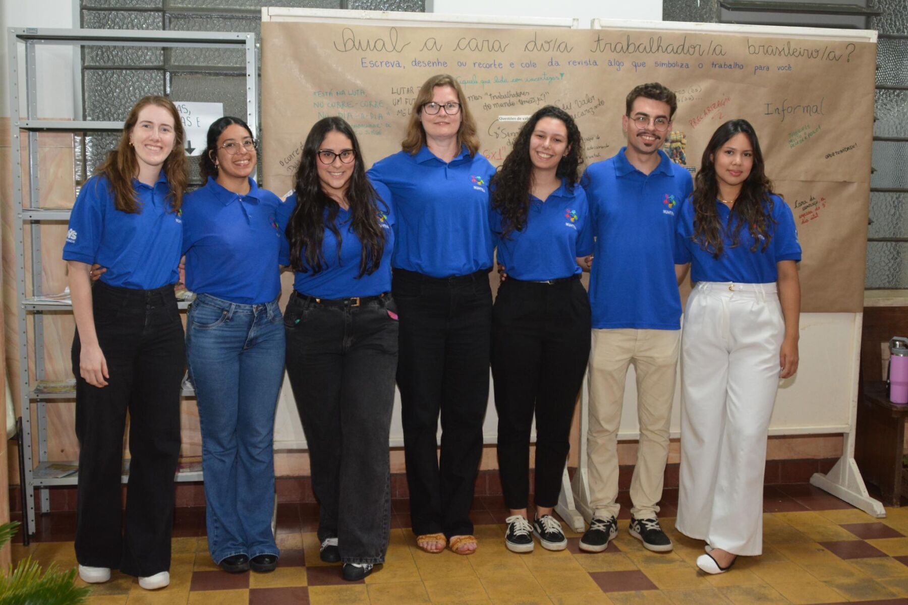 A equipe do Nuhtra levou duas ações para a Grande Feira no pátio da Unicentro: um plantão psicológico para quem quisesse falar sobre sofrimento ou dificuldades no trabalho e a exposição “Qual é a cara do trabalhador brasileiro?”, que convidou o público a responder essa pergunta por meio de frases ou imagens. “A proposta foi que as pessoas interagissem e parassem um pouquinho para pensar sobre o trabalhador ou o trabalho no Brasil”, explica Cláudia.