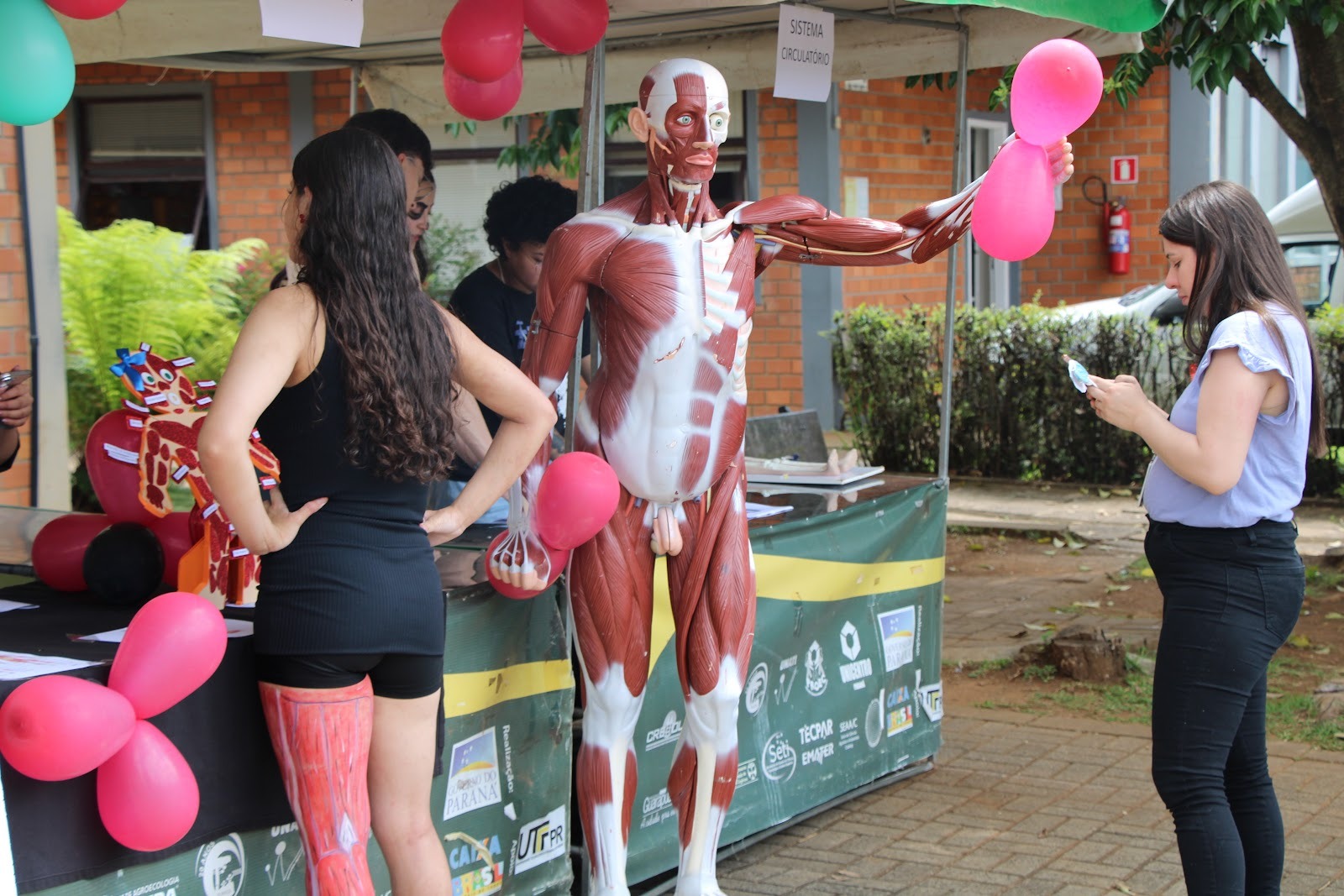Os alunos do primeiro ano do curso de Farmácia da Universidade Estadual do Centro-Oeste (Unicentro) realizaram, na quarta-feira (26), uma exposição sobre Anatomia do Corpo Humano. A atividade ocorreu no estacionamento ao lado da Direção do Câmpus Cedeteg, e apresentou ao público os trabalhos desenvolvidos ao longo do ano na disciplina de Anatomia.