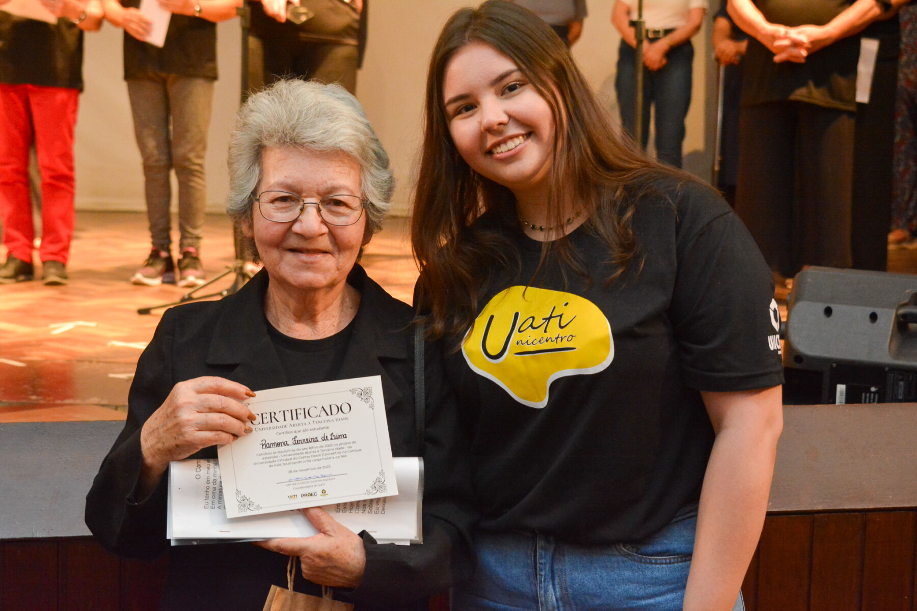 O evento também foi espaço para a apresentação das iniciativas dos cursos de graduação da Unicentro junto à Uati. “A gente entende que a universidade é aberta tanto para as pessoas idosas, quanto para a comunidade acadêmica, como um espaço para desenvolver pesquisas, atividades de ensino e projetos de extensão”, contextualiza a professora Cinthia.