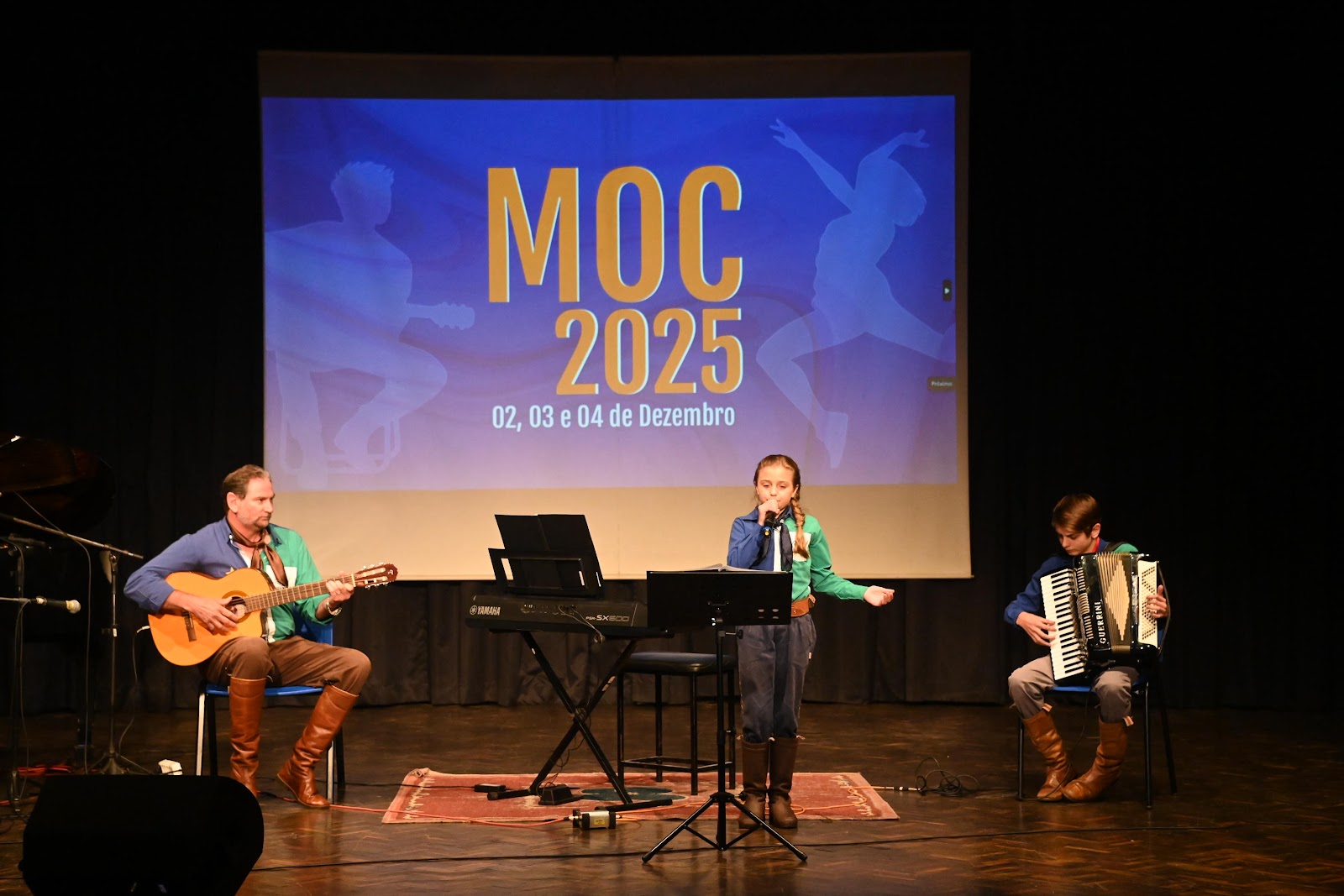 Na noite da última terça-feira (2), o auditório Francisco Contini, no Câmpus Santa Cruz, foi palco da abertura da Mostra de Oficinas Culturais da Unicentro 2025 (MOC). O evento, promovido pela Diretoria de Cultura, vinculada a Pró-Reitoria de Extensão e Cultura, celebra e apresenta ao público os resultados das oficinas artísticas realizadas ao longo do ano pela universidade.