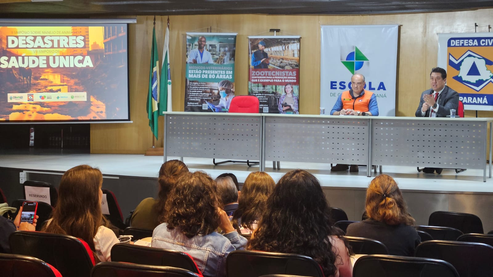 O coordenador do Centro de Triagem de Animais Silvestres da Unicentro (Cetras), professor Rodrigo Martins de Souza, está representando a universidade no 2° Simpósio sobre Manejo de Animais em Desastres e no 8° Simpósio de Saúde Única. Os eventos são promovidos pelo Conselho Regional de Medicina Veterinária do Paraná (CRMV-PR), por meio da Comissão Estadual de Gestão de Riscos de Animais em Desastres, da Comissão Estadual de Saúde Única e da Comissão Estadual de Animais Selvagens, em parceria com a Coordenadoria Estadual da Defesa Civil. Os simpósios, que acontecem simultaneamente, começaram na última terça-feira (2) e seguem até esta quinta-feira, no auditório do Palácio das Araucárias, em Curitiba.