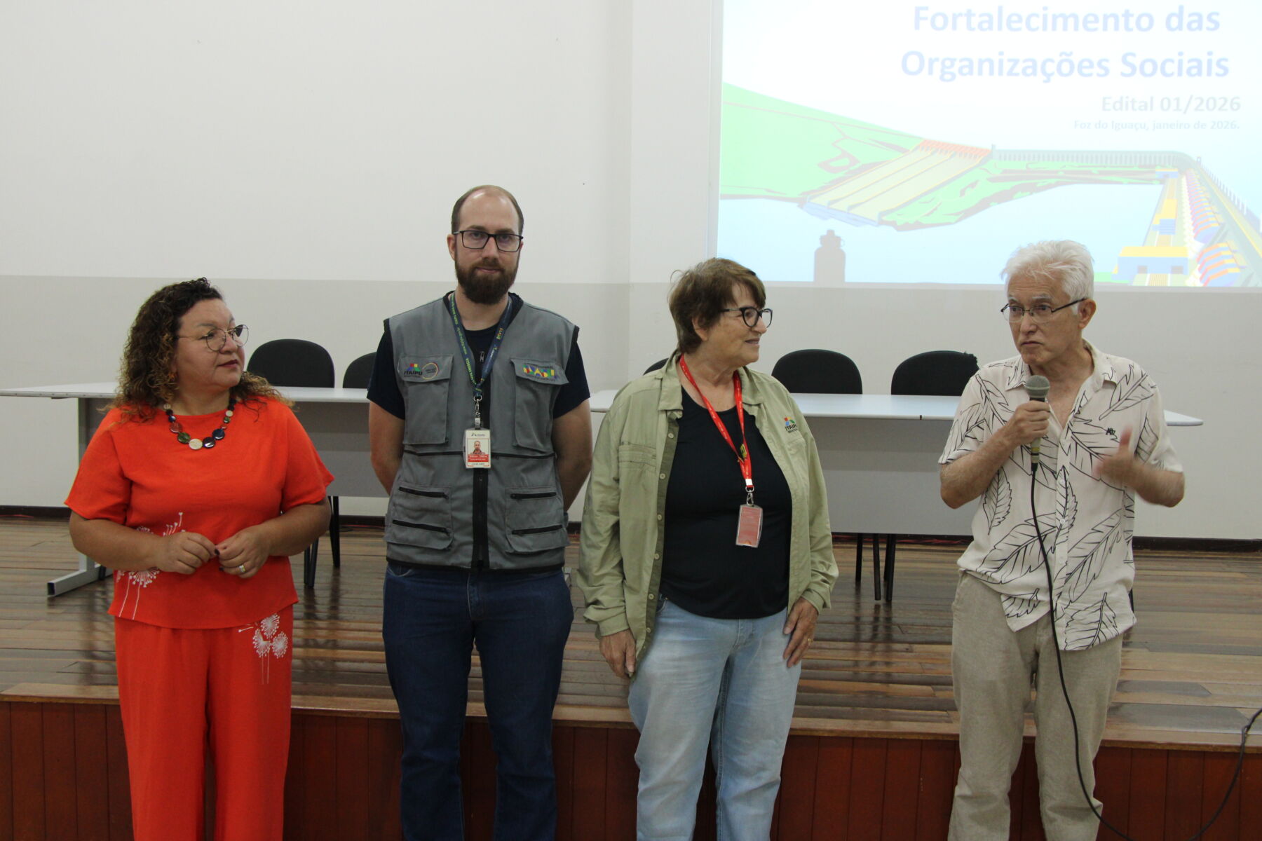 Na manhã desta quinta-feira (29), o auditório do PDE, no câmpus Cedeteg da Universidade Estadual do Centro-Oeste (Unicentro), recebeu um encontro com instituições sem fins lucrativos do núcleo da região central do Paraná interessadas em participar do Edital 01/26 Itaipu Mais que Energia – Fortalecimento das Organizações Sociais.