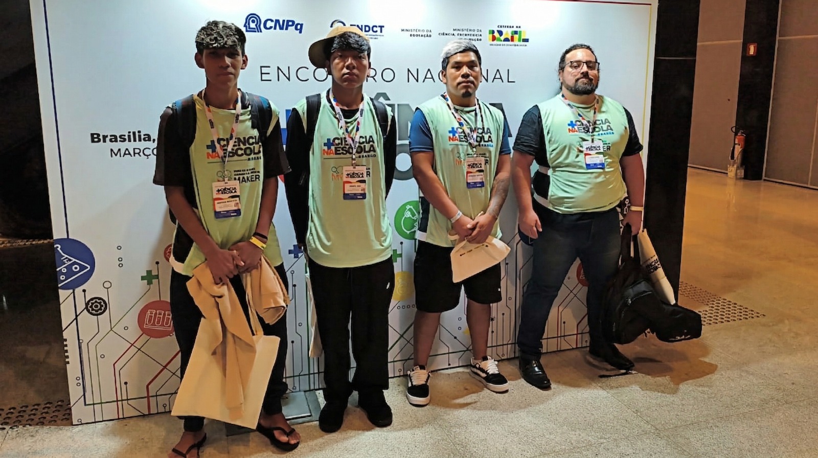 Representantes do Clube de Ciências Maker Pỹn fĪfĪ no Encontro Nacional Mais Ciência na Escola.