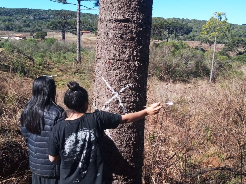 A investigação sobre a araucária, por exemplo, une a observação de campo e o diálogo com os anciãos da comunidade ao rigor do método científico. Conforme explica Luan, como o pinhão é um pilar da economia extrativista local, entender sua produtividade é essencial. O professor relata que o grupo buscou compreender por que a produção oscila entre os anos. Ao consultarem os mais velhos e cruzarem os dados com estudos publicados, descobriram que o estróbilo feminino do pinheiro pode levar até 36 meses para maturar completamente. Essa constatação também permitiu que o grupo passasse a idealizar métodos de colheita mais seguros e eficientes.