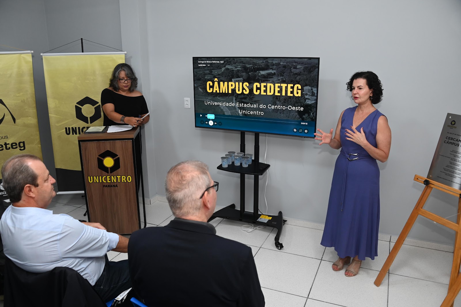 Na cerimônia, o ato simbólico de descerramento da placa também contou com a presença do vice-reitor da Unicentro, Ademir Juracy Fanfa Ribas, do diretor do Câmpus Cedeteg, Ricardo Miyahara, e da vice-diretora do câmpus, Aline Marques Genú.