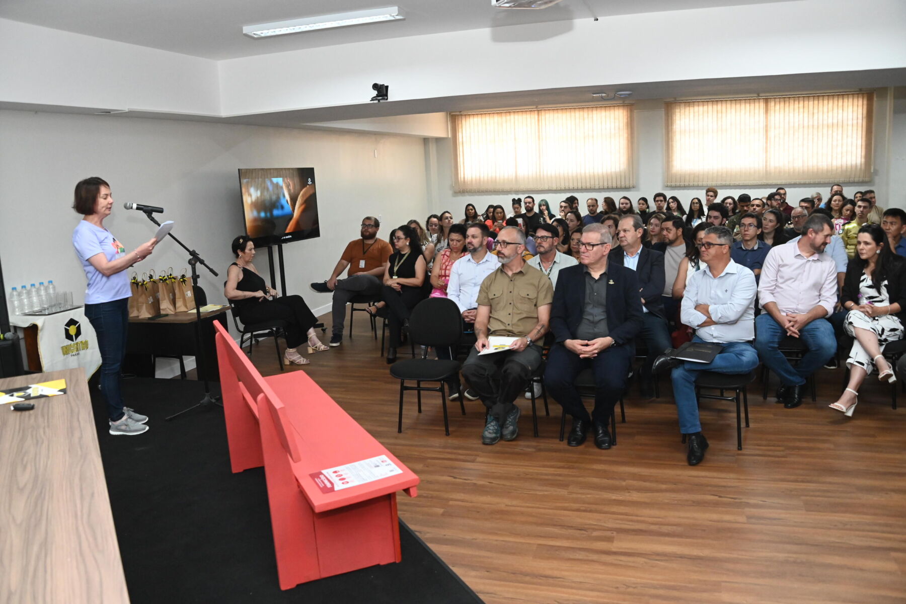 Destaques – A cerimônia no Câmpus Santa Cruz também foi marcada pelo lançamento da campanha de combate ao feminicídio “Banco Vermelho”, uma iniciativa que busca sensibilizar a comunidade acadêmica para a gravidade da violência contra a mulher.
