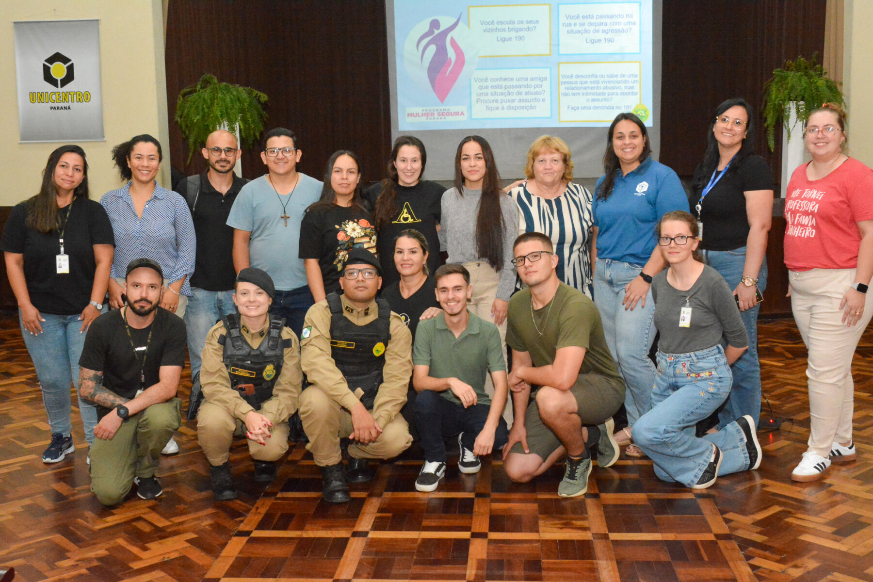 Durante as falas na Unicentro, integrantes da 8ª Companhia Independente de Polícia Militar enfatizaram a importância da segurança de mulheres em situação de violência. “A Patrulha Maria da Penha trabalha principalmente com a prevenção, mas também com os flagrantes, que é a intervenção quando o fato está ocorrendo”, explica o soldado Khaioma.
