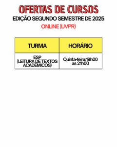 - O curso “Inglês instrumental para iniciantes: estratégias de leitura no contexto acadêmico” NÃO exige teste de nivelamento prévio. Acesse o link para o respectivo formulário abaixo.