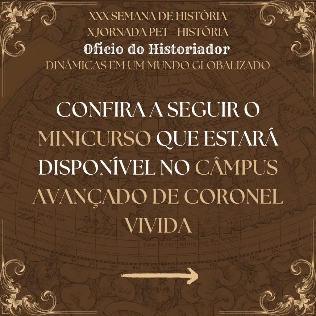 [2025] CONFIRA OS MINICURSOS QUE ESTARÃO DISPONÍVEIS NO EVENTO – XXX Semana de História e X Jornada PET-História: Oficio do Historiador: Dinâmicas em um Mundo Globalizado